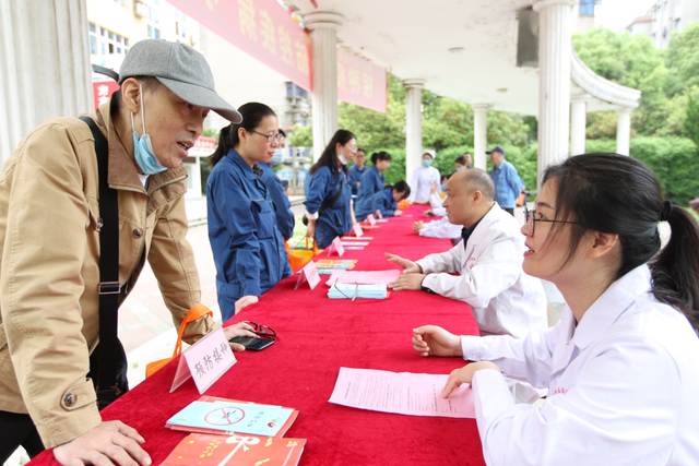 在现场交流环节,青山湖区疾控中心专家就新冠疫苗接种、慢性病防控等方面问题与员工进行面对面解答;江西省肿瘤医院的知名专家在现场开设义诊台,为大家量血压、解疑惑,并派发相关宣传资料和手册。