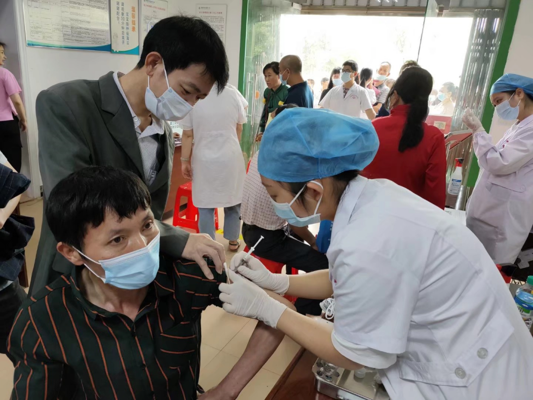 沙地镇政府把任务分配到每个行政村,对每日新冠疫苗接种群众的动员宣传、人员安排、时间调节、地点通知等工作进行了详细的部署,同时为了确保新冠疫苗接种现场的安全,我院邀请沙地镇派出所、赣南救援队等工作人员做好现场秩序的维护,从而提高居民的满意度。