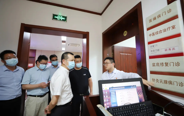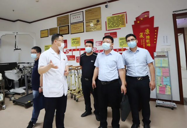 座谈后,林金秤一行实地走访了康复医学科治疗大厅、治未病中心、针灸科治疗室以及软组织损伤科治疗室等场所,并就中医特色技术的开展、学科定位、人才管理等与临床科室主任进行了细致交流。