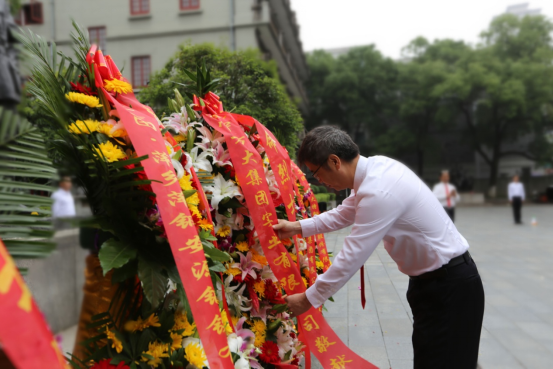 伴随着深情的《献花曲》,全体代表缓步绕行瞻仰“一代英豪”雕塑,将手执的鲜花敬献在雕塑前。