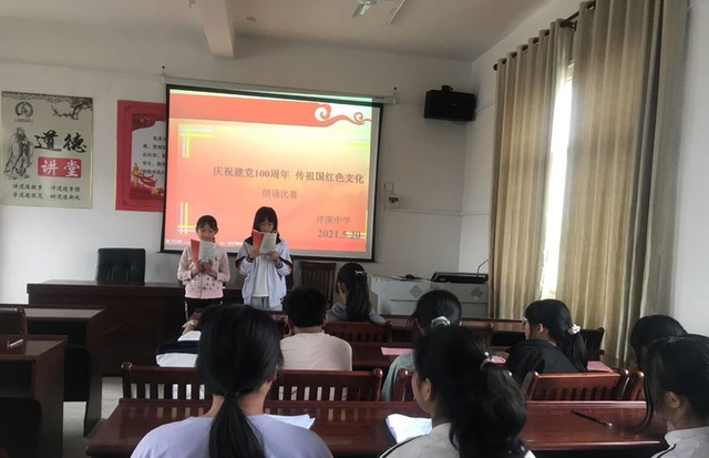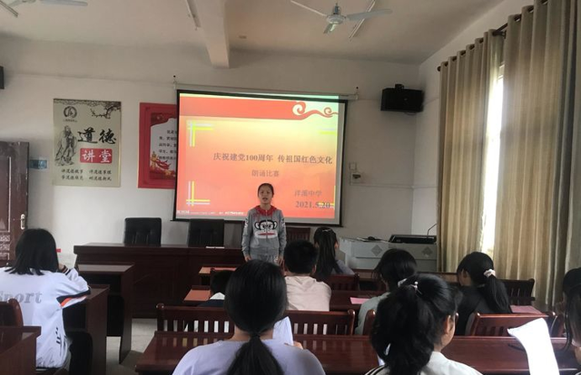 一百年前,一个伟大的政党庄严宣告成立,一百年前,一面火红的旗帜迎风冉冉升起。2021年是中国共产党建党100周年,为隆重纪念中国共产党建党100周年传承中国红色文化,安福县洋溪中学举办了以“红色文化”为主题庆祝建党100周年的朗诵比赛活动。