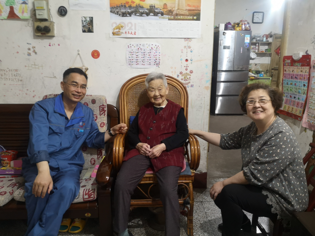 在马改民老人家中,胡建忠亲切和马老交谈,详细了解她的革命生涯和如今的生活情况。马改民老人虽已近100岁高龄,但思维清晰,声音响亮。作为红军遗孀及抗日战士,马老始终在工作中、生活中保持乐观、积极的心态,用艰苦奋斗的革命优良传统影响着同事和家人。
