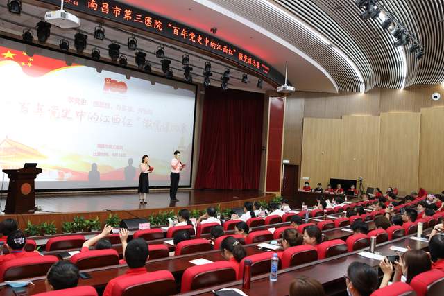 为隆重纪念中国共产党建党100周年,回顾党的光辉历程、讴歌党的丰功伟绩,深入践行习近平总书记视察江西重要讲话精神, 6月16日,南昌市第三医院在朝阳院区举行“百年党史中的江西红”微党课比赛。院领导班子成员及党员代表百余人参加。