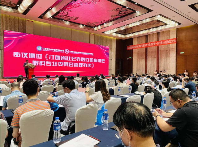 中国非公立医疗机构协会眼科专委会主委葛坚、江西省社会办医疗机构协会会长王共先、江西省社会办医疗机构协会副会长兼秘书长陈华峰、江西省社会办医疗机构协会副秘书长胡政、江西省社会办医疗机构协会眼科专业委员会筹委会主任杨海军及百余名来自全国各地的眼科医生共同见证了江西省社会办医疗机构协会眼科专业委员会的成立,副会长兼秘书长陈华峰主持大会,筹委会主任杨海军进行了专委会筹建工作报告,副秘书长胡政审议并通过专委会管理办法、行业自律公约,选举专委会首届委员会领导班子。