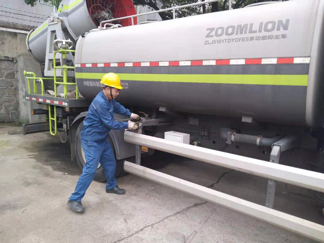 图为方大特钢焦化厂党员为洒水车安装护栏