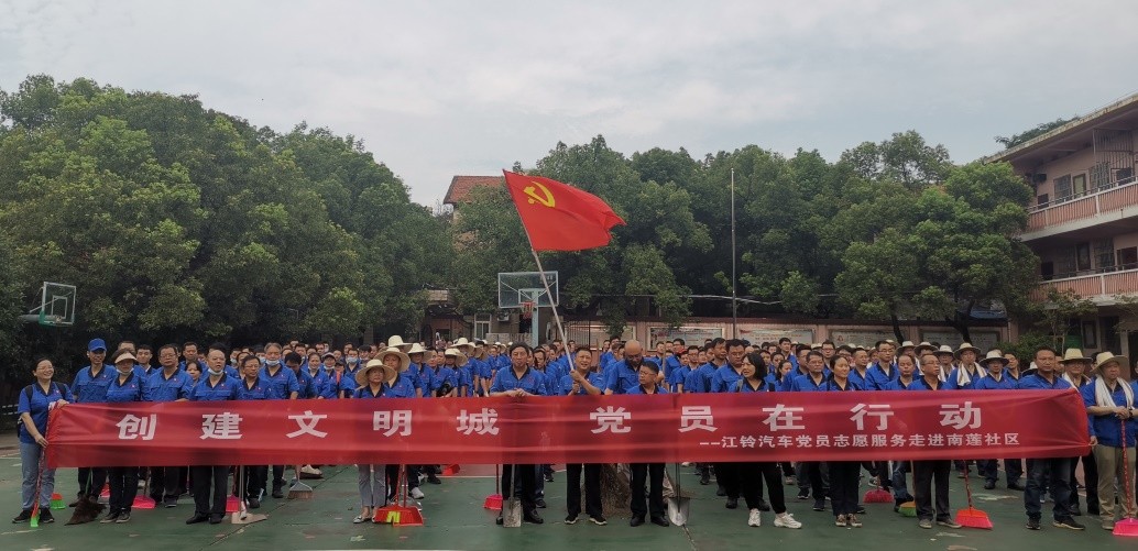 学史力行,实干为民。江铃集团把“我为群众办实事”实践活动和深化全国文明城市创建工作相结合,7月17日,300余名党员志愿者走进文明城市创建挂点社区,对社区卫生环境进行全方位、无死角的深度清理。