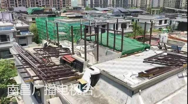 中海朝阳郡铂宫别墅小区位于西湖区朝阳洲的桃花南路与雷池街的交叉路口, 记者在该 小区 调查时发现,小区内违章搭建现象非常普遍, 阳光房“遍地开花”,有的在楼顶搭建凉亭,有的在楼顶加层。