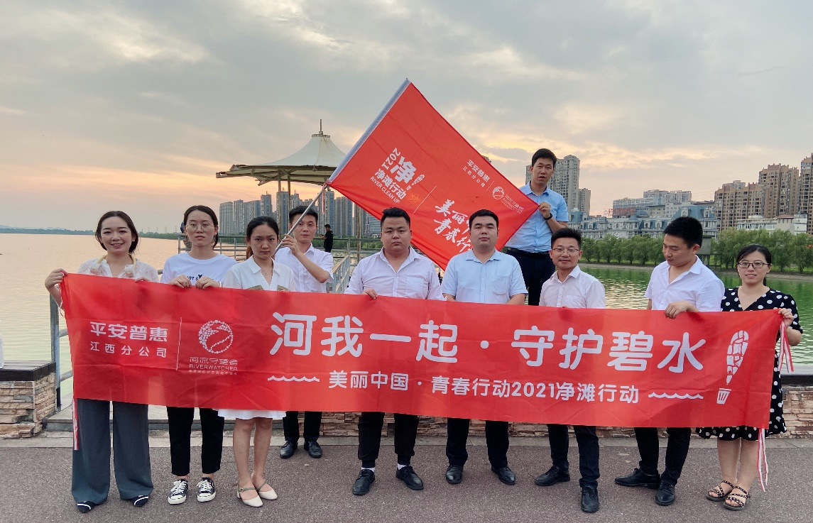 江西省九江市因水而名、依水而居、抱水而卧、得水之灵。水,是九江之傲,优美的山水、良好的生态环境是九江的突出优势,也是建设宜居宜业城市的重要支撑。但近些年随着经济的发展、人们活动量的增加,八里湖周边生活垃圾逐渐增加。为保护好八里湖畔的生态环境,平安普惠九江分公司响应总部号召发起“河我一起 守护碧水—美丽中国 青春行动”2021净滩行动。