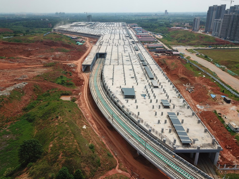 南昌市轨道交通4号线望城车辆段工程位于南昌市新建区生米镇白马山路与龙兴大街交汇处,车辆段用地呈西南—东北向的长方形,东西长度约为1260~1380m,南北宽约368m,用地面积约32公顷,合同总造价13.5亿元,计划竣工日期为2021年12月30日。车辆段主体为盖下一层框架结构,盖上作为后期物业开发,车辆段内主要建筑有:联合检修库、运用库、综合楼、咽喉区及其库内外等14个建筑单体。
