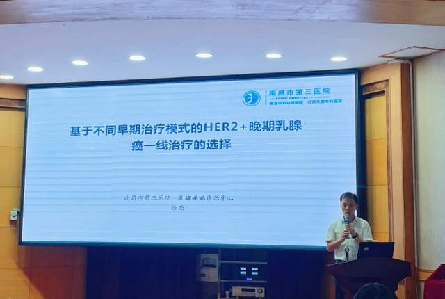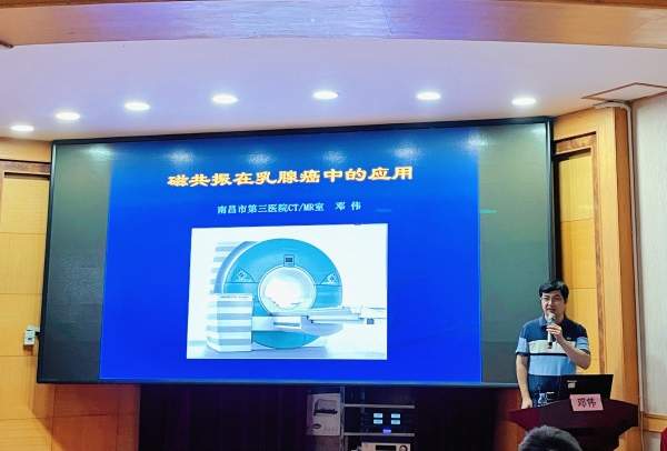 南昌市第三医院外科第二党支部副书记徐亮同志和MDT团队邓伟教授分别带来了《基于不同早期治疗模式的HER2+晚期乳腺癌一线治疗的选择》和《磁共振在乳腺癌中的应用》专题讲座。