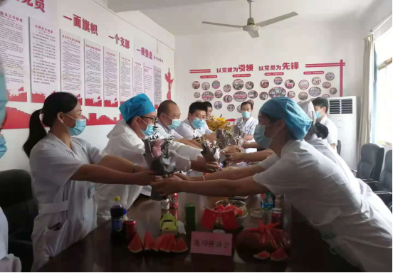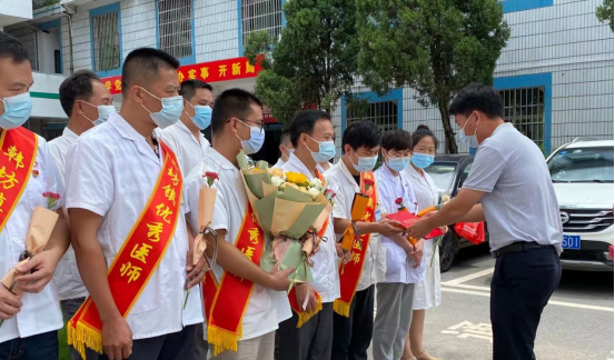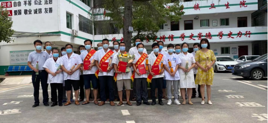 韩坊镇中心卫生院:8月19日上午,韩坊镇镇党委副书记、镇长黄昭冰,镇人大副主席黄林华等领导一行,来到韩坊镇中心卫生院慰问一线医务人员,代表韩坊镇党委、政府向全体医师们送上鲜花、纪念品和节日的祝贺,同时为优秀的医师代表们颁发荣誉证书。