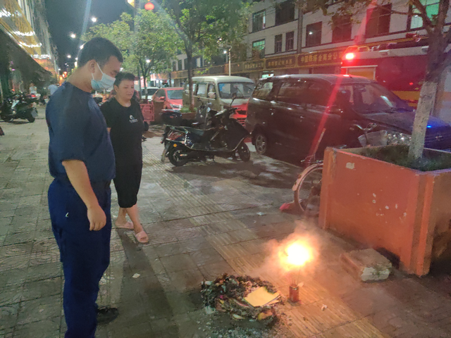 在执勤过程中,各站点对辖区内的重要街区、老旧居民住宅区、人员密集焚烧点等重点场所进行前置备勤。全体政府专职消防员做到文明执勤、高度警惕,时刻关注火灾隐患,重点提醒百姓群众要文明祭奠、小心火烛,如遇大风天气,请勿烧纸、燃烛、点香、燃放爆竹。提倡采取默哀祭奠、敬献鲜花等方式进行祭奠,提倡大家用文明、节俭、低碳、安全的现代祭奠方式树立文明新风,确保辖区火灾形势稳定,力保中元节期间辖区的消防安全。