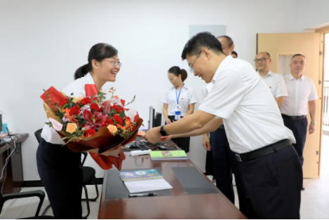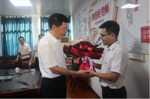 坚守教学一线24年的优秀教师唐俊彬既是省高中物理学科骨干教师,也是市第三批高中物理学科带头人,现任萍乡中学创新班班主任。“祝你教师节快乐!”在萍乡中学教师办公楼,陈敏为唐俊彬老师送上党委、政府的关怀和祝福,为他所带班级高考取得优异成绩表示祝贺。陈敏希望他发挥好“传、帮、带”作用,继续落实立德树人根本任务,弘扬优秀教师的高尚精神,传授好的教学经验做法,与广大教师一起潜心治学,开拓创新,继续当好学生成长的引路人。