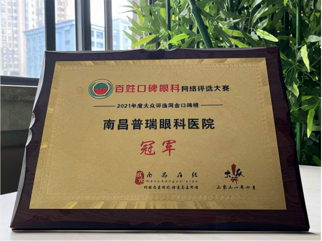 本次口碑评选比赛由大众评选网、城市品牌传媒共同主办,共有74家在南昌具有一定知名度的眼科医院(机构)参与评选。南昌普瑞眼科医院在一众知名眼科医院中摘得桂冠,荣获第一名,体现出广大市民对我院的认可,普瑞眼科将不负众望,努力为患者做好服务。