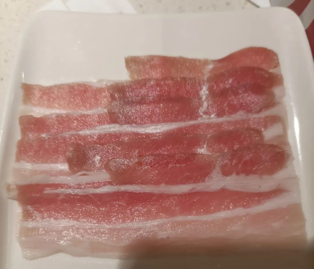 小史告诉记者,12月6日凌晨,他和朋友两个人来到 盈石广场五楼的海底捞火锅用餐。在吃火锅时,小史发现一盘快吃完的五花肉中,有几片五花肉颜色较深。