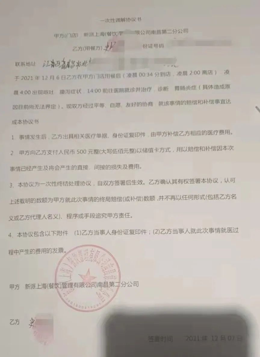 经过调解,双方最终协商一致:由 海底捞支付小史的医药费,并用500元储值卡的赔偿方式 ,赔偿和补偿小史已经产生及将会产生的直接、间接的损失及费用。
